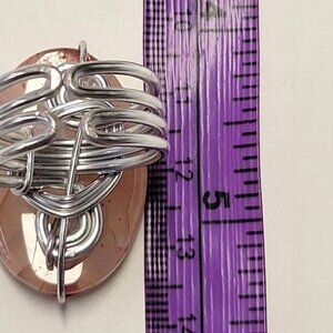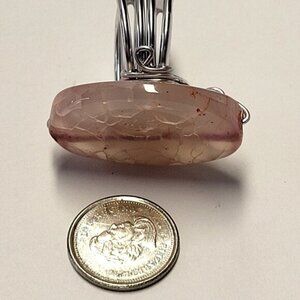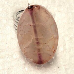 Pink Gemstone Ring with Veins Adjustable Band - Unique, One Of A Kind