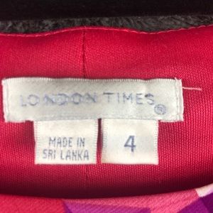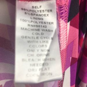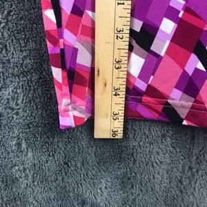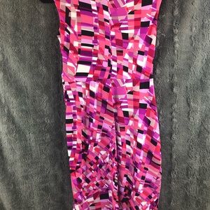 Pink, white, purple, burgundy & black dress with ruching at waist. Like new