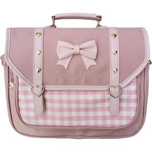 Pink Gingham Bow Satchel Backpack with Heart Accents – Kawaii Style