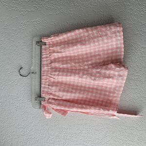 Chic pink gingham wrap skirt. Perfect for casual outings.