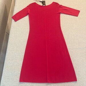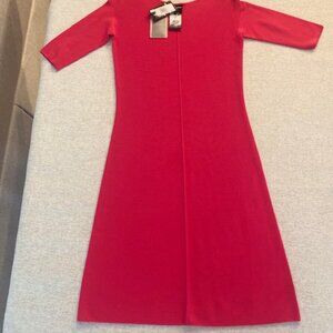 New with tags. Giorgio Armani knit midi dress. EU size 40. Flattering and versatile neckline that looks great with jewelry or scarf. Light weight knit, perfect for any season. Elbow length sleeves, soft, lovely slight A-line drape.