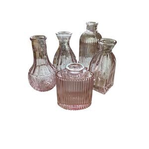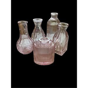 New set of 5 small bud vases, average 4” to 5” in height, See Measurements