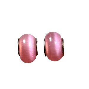 Pink Glass Charm Beads With 925 Sterling Silver Core For Bracelets & Necklaces