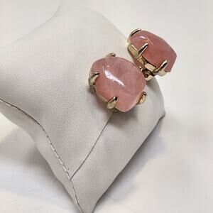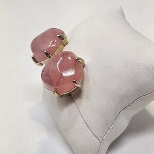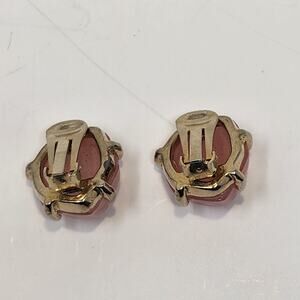 Pink glass faux stone silver tone metal setting clip on earrings, Costume Fashion Jewelry Chunky Casual Workwear Career