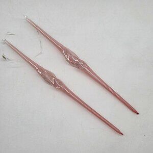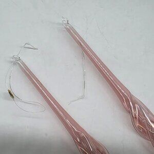 Pink Glass Icicle Ornaments Set Of 2 Twisted Design Christmas Decoration 9.5"