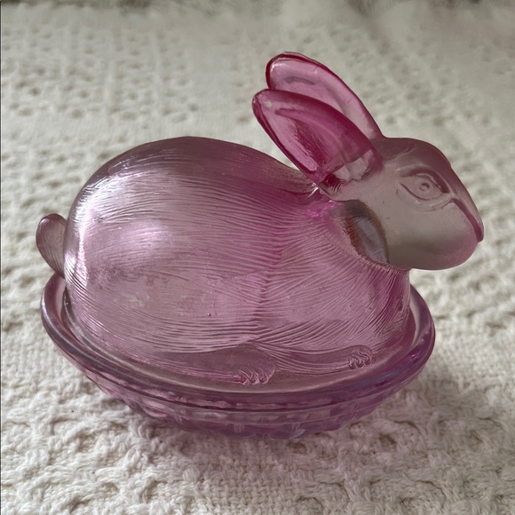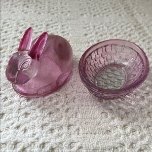Pink Glass Rabbit Candy Dish