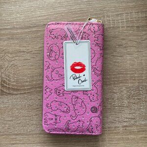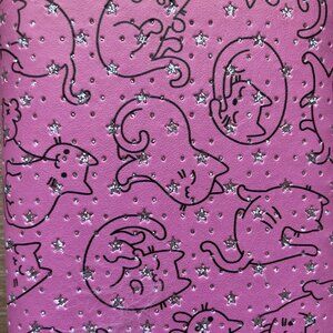 Faux leather wallet with pink, glitter cat design. Very cute design. Vegan!
