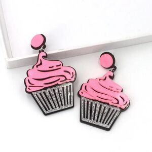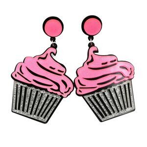 Celebrate in style with these bold pink glitter cupcake acrylic statement earrings! Perfect for birthdays or any special occasion, these fun earrings feature zinc alloy posts for a comfortable fit. Add some sparkle to your outfit and stand out with these eye-catching accessories!