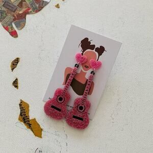 Features: Pink Glitter Guitar and Heart Charm Drop Barbiecore Eras Statement Earrings; acrylic statement earrings