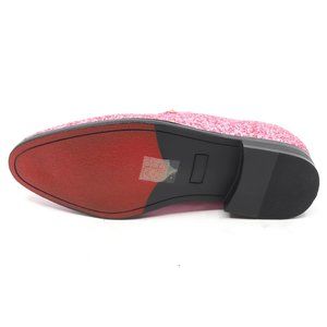 Pink Glitter Men's Vintage Designer Classic Smoking Dress Tuxedo Loafers Shoes