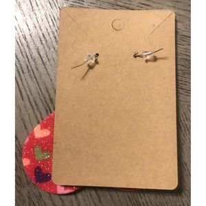 Pink Glitter Teardrop Hearts Silver Hardware Earrings USA Valentine's Day