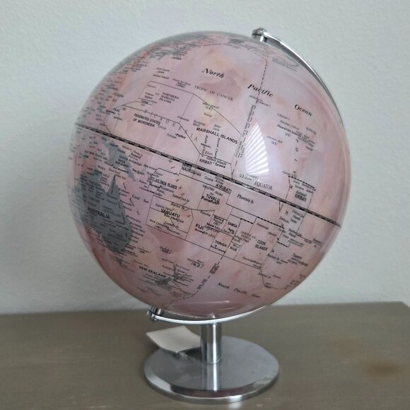 Pink and Blue Globe with Soft Colors and Silver Base