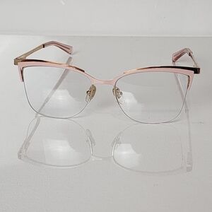 Pink Gold Cat-Eye Semi Rimless Eyeglass Frames Adjustable Nose Pads 5.16" Wide