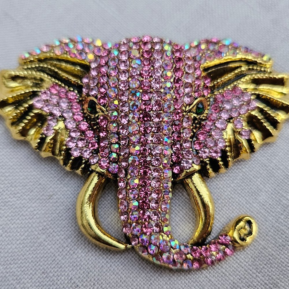 Pink & Gold Elephant Rhinestone Brooch/Pin