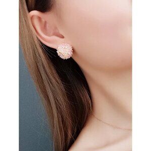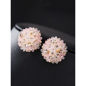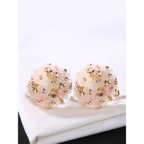 Pink Gold Rhinestone Detail Flower Stud Earrings