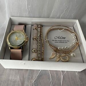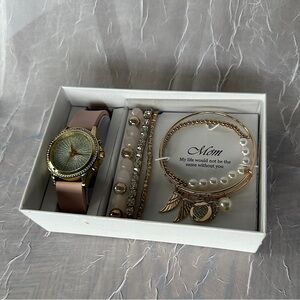 Pink & Gold Watch & Jewlery Bracelets Gift Set For Mom Mothers Day Gift NIB