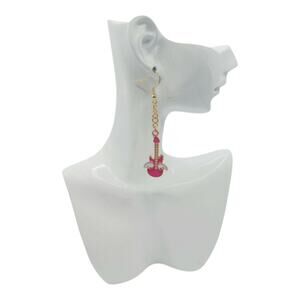 pink earrings, wing earrings, white wing jewelry, dangle earrings, whimsical jewelry, angel wing earrings, statement earrings, gift for her, party earrings, enamel earrings Kawaii Pink Guitar Earrings Wings Rock n Roll Rave Alt Girl Y2K Jewelry concert, music festival rave e-girls musicians, punk babes, rocker chick vibes, scene fashion, rave-core