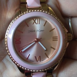 Pink & gold watch. I bought off of someone else it's in great condition. I don't think it has a brand. Fits a bigger wrist or you can take out links.