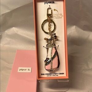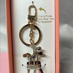 Chic pink golf bag with clubs bag charm with gold & silver accents. Perfect gift for golf enthusiasts or a Mother’s Day gift!! 💕