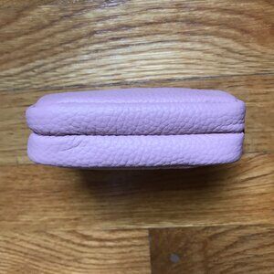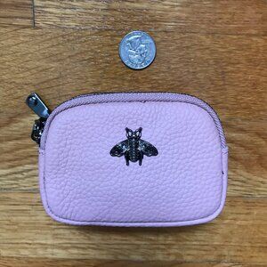 Pink Grainy Genuine Leather Coin Purse ID Holder with Bee