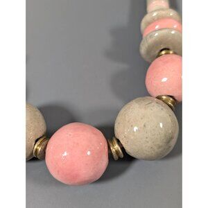 Pink Gray Ceramic Bead Statement Necklace Chunky Tribal Boho 17"