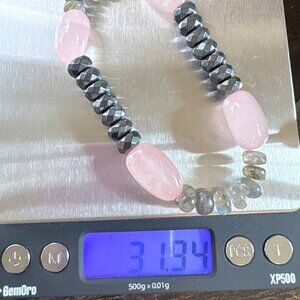 Pink & Gray Quartz Stretchy Beaded Design Bracelet