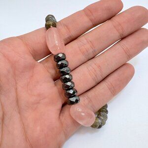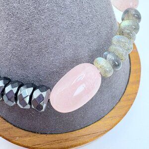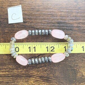 Pink & Gray Quartz Stretchy Beaded Design Bracelet One Size