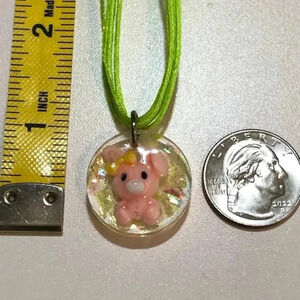 Pink Green Easter Bunny Rabbit Glitter Resin Taffeta Ribbon Necklace Handmade