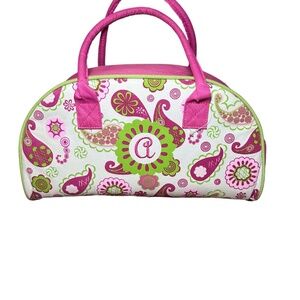 Pink & Green Floral Print Canvas Initial "A" Insulated Lunch/ Makeup Bag