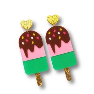 Add a sweet touch to your look with these adorable pink and green ice cream stick acrylic earrings! Sparkly gold accents bring extra flair, while zinc alloy posts provide a comfortable fit. Perfect for anyone who loves playful, statement accessories!