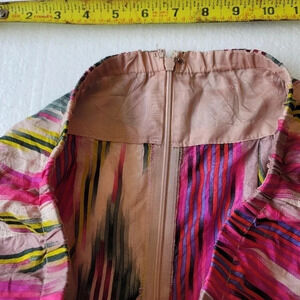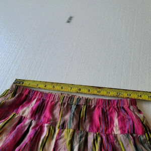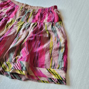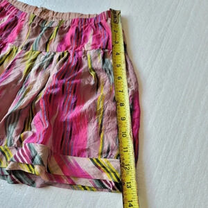 Pink Green Striped Shorts 100% Silk Size M High Rise Lightweight Zip Back