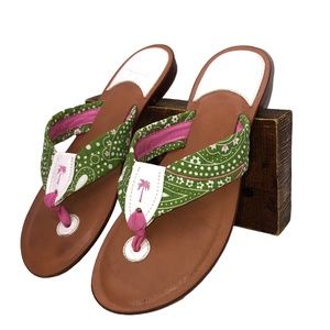 Pink & Green Toe Thong Summer Beach Resort Vacation Sandals Size 10M