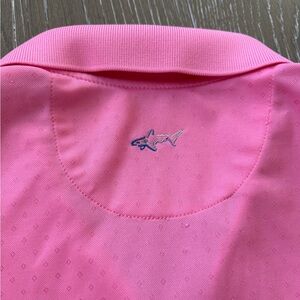 Elevate your golf wardrobe with this stylish pink polo shirt. Perfect for any occasion, it offers comfort and a flattering fit. Please see photo for a couple pulls in the shirt -