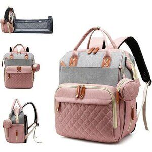 Pink Grey Diaper Bag Backpack with Changing Station Waterproof Baby Travel Bag