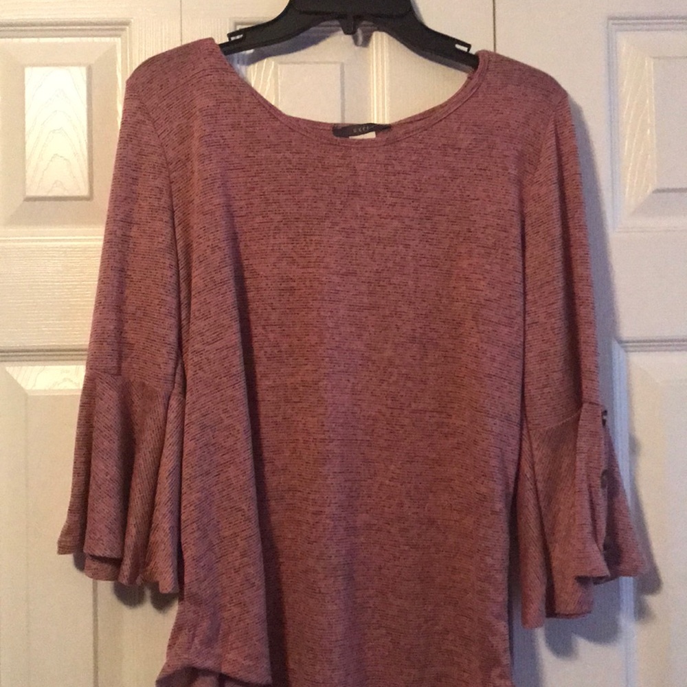 Soft casual top by Gyft pink with black specks. Flutter sleeves with buttons.