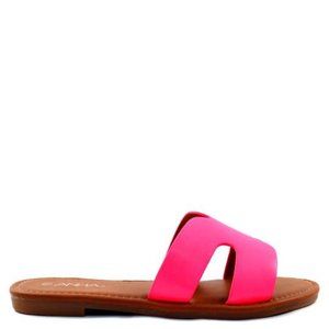 Comfort at it's finest!! Enjoy these easy slide in sandals with an H-Shape pattern on a cushioned footbed in these vibrant colors.