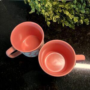 Set of 2 New Coral Pink/Peach Ghost Halloween Coffee Mugs. Brand New with Stickers on Bottom.