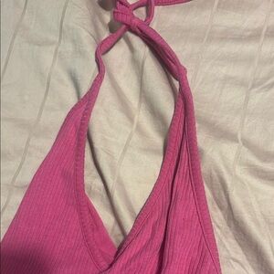 Pink Halter Neck Ribbed Top