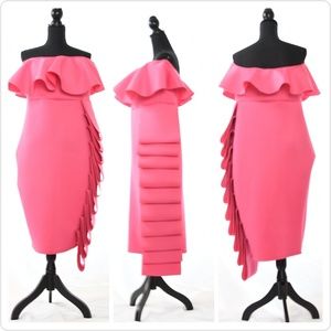 Ouum Pink Halter Ruffle Scuba Dress
