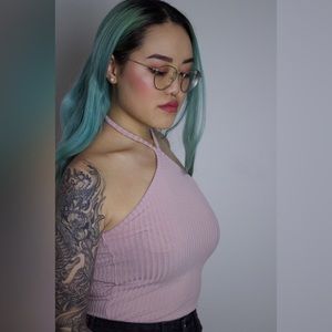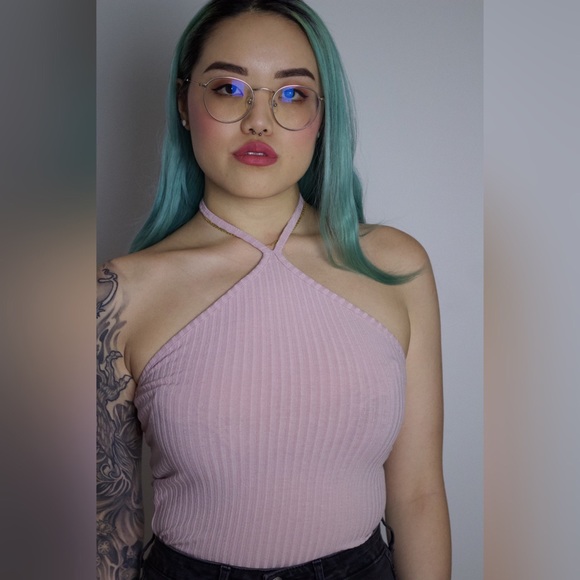 Ribbed crop halter top. It’s a dusty pink color and fitted. Only worn a couple times.