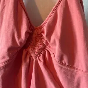Stylish pink halter top with a gathered front design with sequins. In good condition and from a non-smoking home.