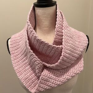Cozy and stylish pink infinity knit scarf, perfect for any occasion.