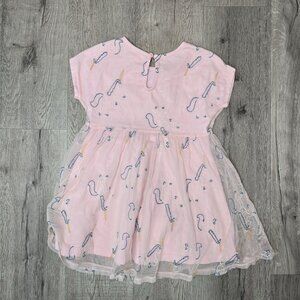Pink Hanna Andersson Girls Unicorn Embroidered Dress W/ Sheer Overlay Size 6-7