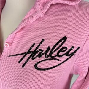 Pink Harley Davidson Hoodie Long Sleeve Waffleknit Top SIze Small Y2k Vintage