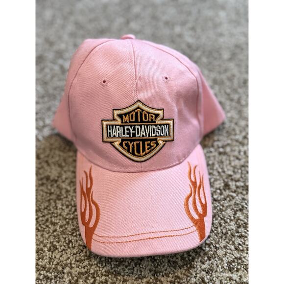Pink Harley Davidson Womens Baseball Hat Cap Flames Adjustable Cotton. Condition is Pre-owned - Good. Shipped with USPS Ground Advantage.