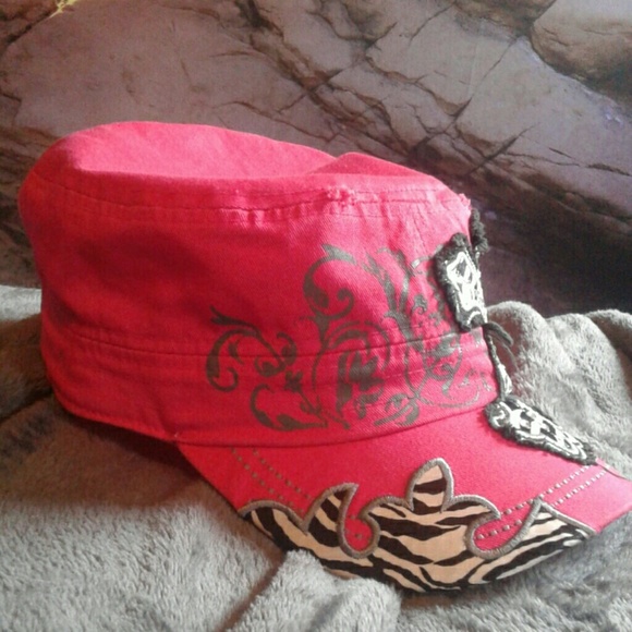 Make a statement with this super Cute bright pink and Zebra Print Cross Hat with a cross decal on the front .
