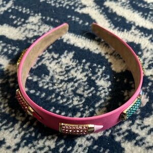 Pink Headband with Rhinestone Pencil Accents