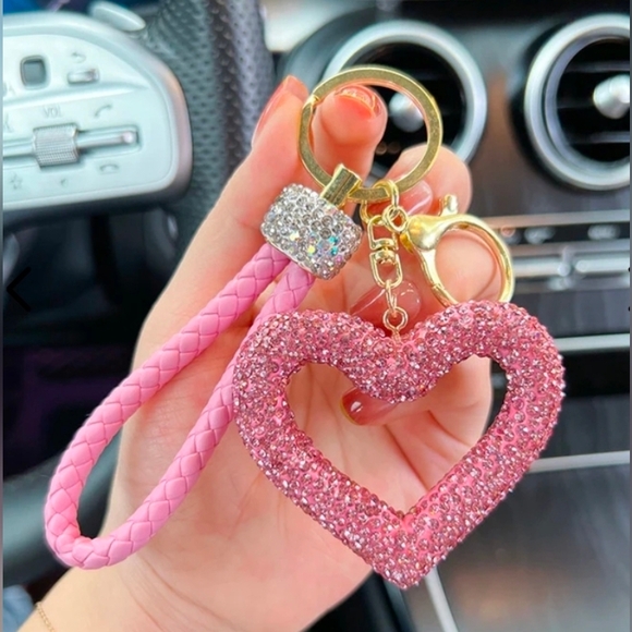 Add a touch of sparkle to your accessories with this pink heart keychain. Perfect for adding charm to your keys or bag.