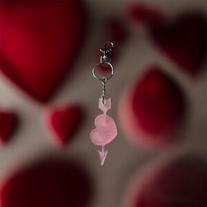 Charming pink heart keychain with an arrow design. Perfect for adding a touch of love to your accessories.