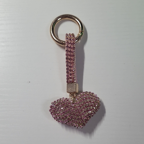 Add a touch of sparkle to your accessories with this pink heart keychain. Perfect for adding charm to your bag or keys.